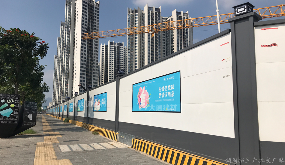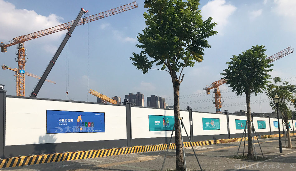 深圳市大通建材烤漆鋼結構圍擋a款-深圳寶安藝展中心工地施工圍擋案例