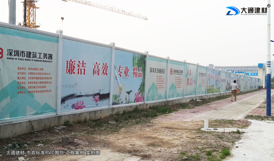 大通建材PVC圍擋可按需進行定制生產,外觀設計新穎美觀,適合項目工程施工外圍使用,充分展示城市建設更新的現代化腳步,可回收循使用,減少對環境造成污染。