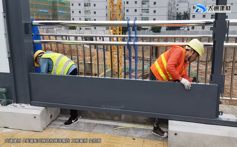 大通建材A類(lèi)裝配式鋼結(jié)構(gòu)烤漆工地施工圍擋半龍骨款安裝如上圖與下圖展示