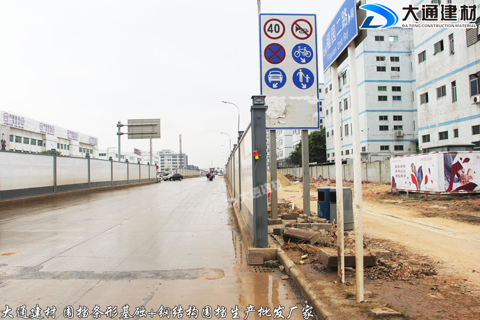 深圳市大通建材有限公司為東莞石龍鎮(zhèn)市政道路施工工程提供圍擋條形基礎(chǔ)+鋼圍擋 批發(fā) 送貨安裝等服務(wù)