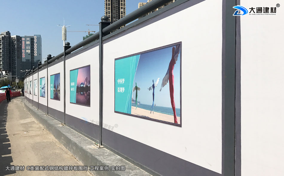 深圳市大通建材深圳標(biāo)準(zhǔn)圍擋鍍鋅板C款是一款新型的裝配式鋼結(jié)構(gòu)圍擋,符合市政新標(biāo)準(zhǔn)、拆裝方便、結(jié)構(gòu)牢固、抗風(fēng)力達(dá)到10級(jí)、安全性高,圍擋生產(chǎn)源頭廠(chǎng)家直接銷(xiāo)售、價(jià)格更便宜。