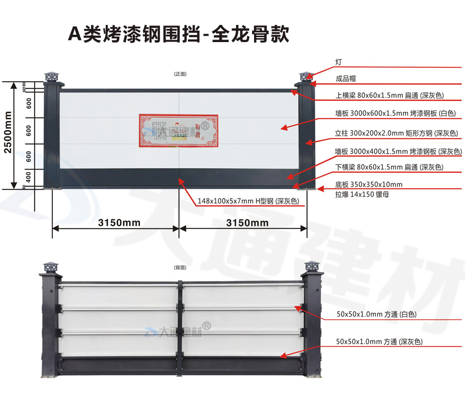 大通建材A類烤漆鋼圍擋全龍骨款適用于市政建設施工、房地產項目施工、地鐵項目施工、學校修建、管網改造、小區改造、城市建設、道路施工等工程使用