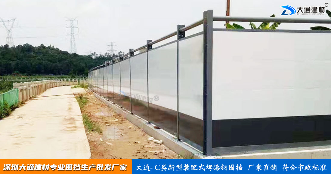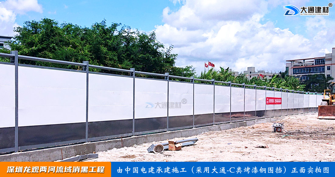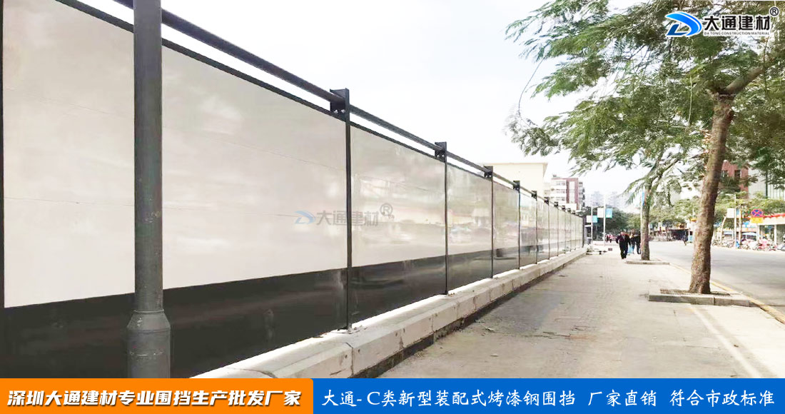 大通建材C類裝配式鋼結構圍擋-烤漆款,具有 美觀環保、拆裝便利、快速拼裝,結構牢固,安全性高,經久耐用等特點,已廣泛應用于深圳、東莞、惠州、廣州、汕頭、珠海、佛山、浙江等地區的工地施工項目中。